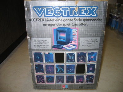 Hier noch zwei Bilder des Verpackungskartons des Vectrex. Praktisch und Informativ: Auf der Kartonseite wurden (fast) alle existierenden Spiele dargestellt und machten natürlich immer sofort Lust das eine oder andere Spiel auch spielen zu wollen…